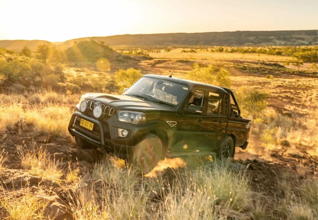 The vehicle is powered by Mahindra’s mHawk turbo-diesel engine, a 2.2-litre four-cylinder common-rail unit delivering the model’s advertised power and torque figures. The engine is offered with a 6-speed transmission and in markets or trims where specified, a 6-speed automatic is available. Published outputs and economy figures emphasise torque and durability for load carrying; official materials list power and torque consistent with the mHawk family and claim combined fuel consumption figures suitable for a commercial bakkie, with a micro-hybrid start/stop system fitted to certain trims to reduce fuel use during idling.